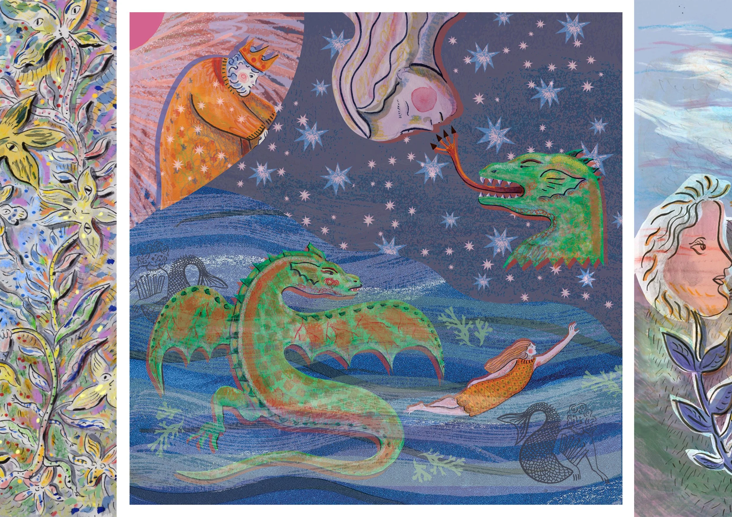 The medieval Christian calendar combined agricultural labours, saints’ legends and the Zodiac to create a story- and marvel-rich view of the passing year. Responding to the collaborative workshop practices of medieval artists, illustrators Hebe George, Lou Boulter and Polly Alizarin Harvey have worked together and with author Amy Jeffs to create a mesmerising cycle of images and words, bringing to the familiar wheeling of the seasons a delightful wealth of strangeness.
